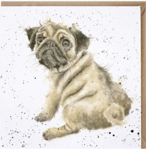 "Pug Love" greeting card from Wrendale Designs - 158 x 158 mm - blank for your own message and comes with brown envelope.