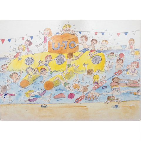"Big Splash" greeting card from Flamingo. Blank inside for your own message. Comes with white envelope. Size: 77 x 204 mm