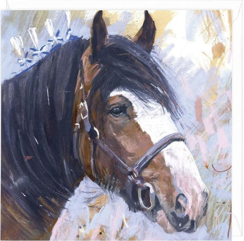 "Clydesdale 1 Hawthorn Topliner" greeting card - blank inside for your own message. Measures 158 x 158 mm - comes with white envelope.