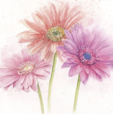 "Gerbera" greeting card by Rose Eddington - blank inside for your own message. Measures 158 x 158 mm - comes with white envelope.