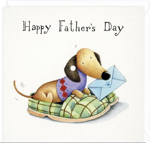 "Happy Father's Day" greeting card featuring an appealing dachshund with greeting card. Blank inside for your own message. Measures 158 x 158 mm - comes with cream envelope.