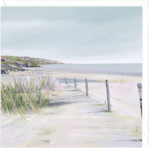 "I Must Go Down to the Sea Again" greeting card featuring a coastal scene - blank inside for your own message. Measures 158 x 158 mm - comes with white envelope.