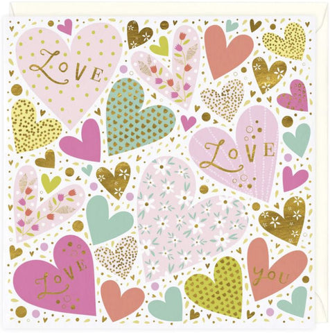 "Love Love Love You" greetings card - blank inside for your own message. Measures 158 x 158 mm - comes with white envelope.