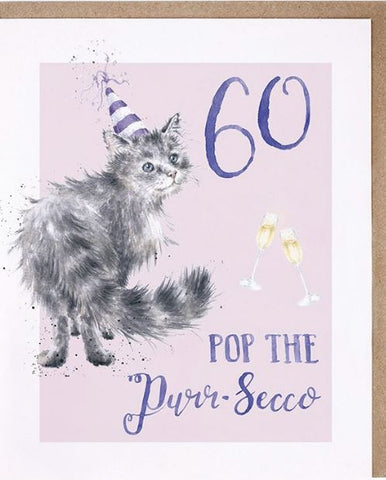 "60 Pop the Purr-Secco" Birthday Greeting Card from Wrendale