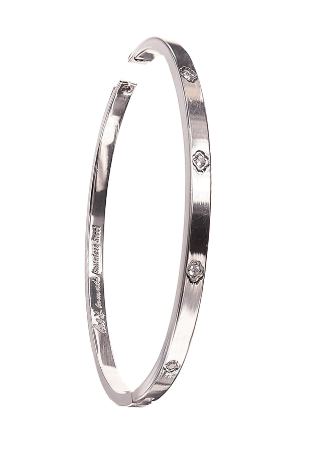 Hot Tomato Hinged Bangle with Starburst Clear Crystals on Stainless Steel Band