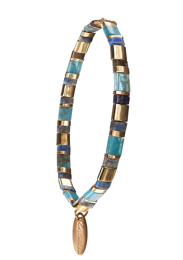 Hot Tomato Miyuki Beads Bracelet in Stone, Delft Blue and Gold