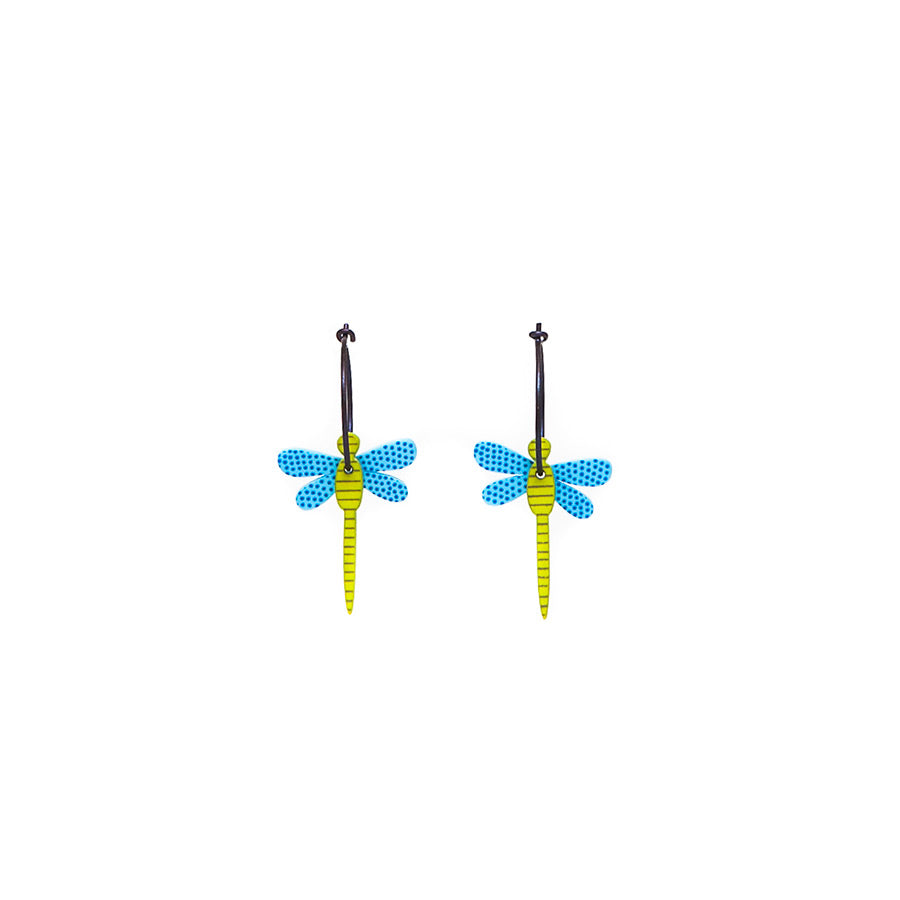 Lene Lundberg K-Form Blue/Green Dragonfly Earrings