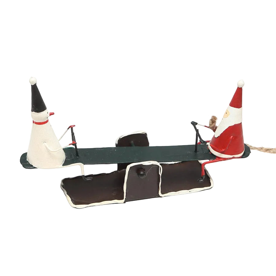 Shoeless Joe Santa with Snowman on Seesaw Hanging Christmas Decoration