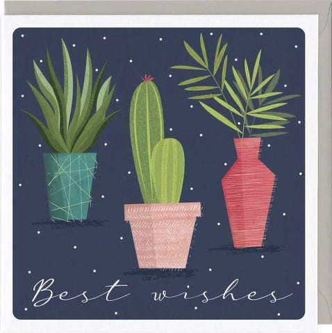 "Best Wishes" greeting card - blank inside for your own message. Measures 158 x 158 mm - comes with grey envelope.