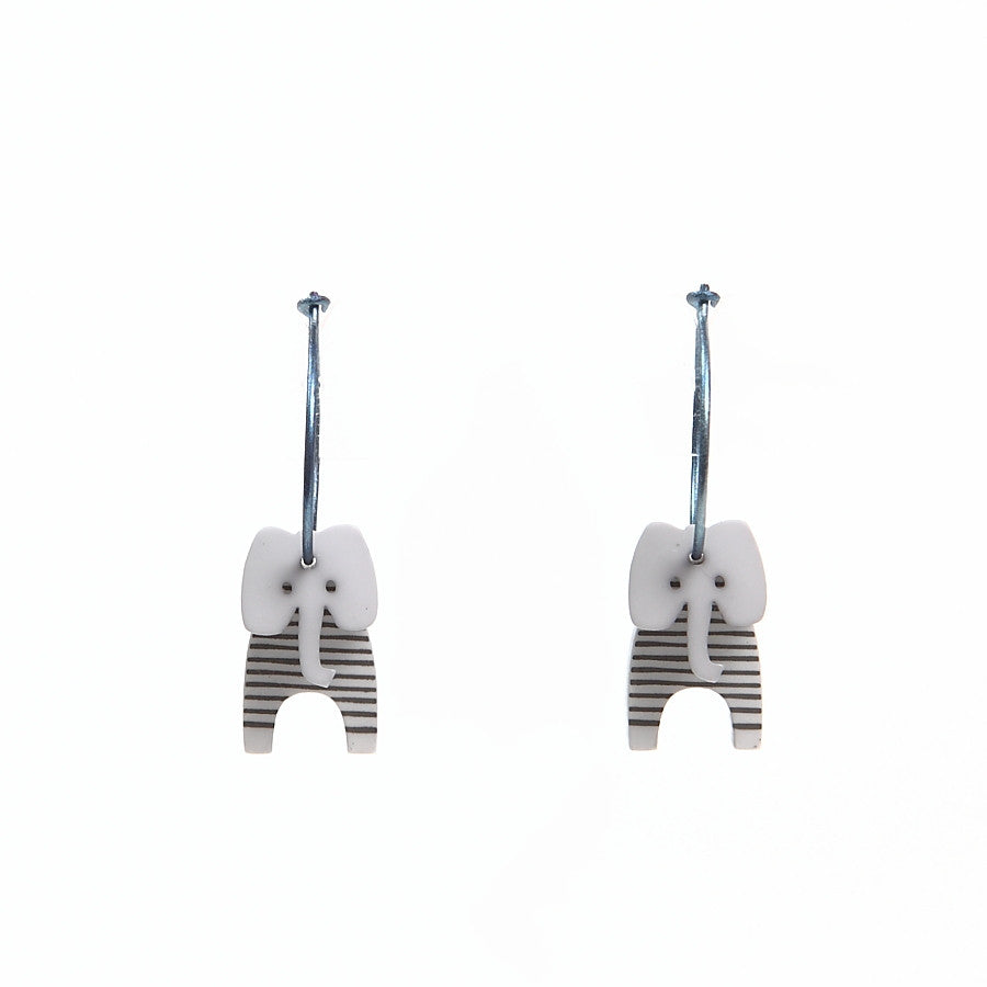 Lene Lundberg K-Form Grey Stripey Elephant Earrings