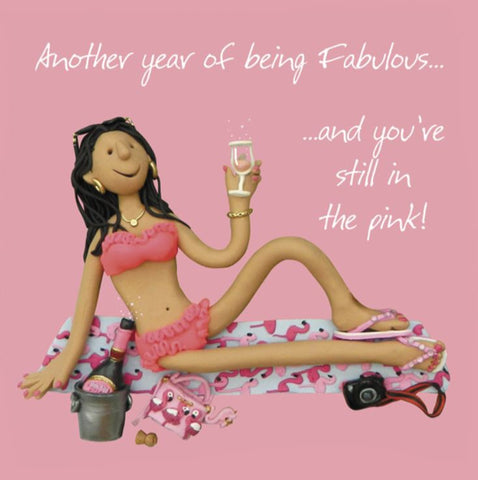 "Another Year of Being Fabulous" birthday greeting card from Holy Mackerel with artwork from the inimitable Erica Sturla. Blank inside for your own message. White envelope included. Size 150 x 150 mm