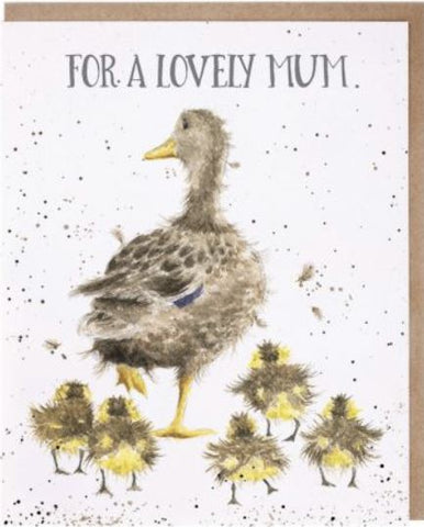"For a Lovely Mum" greeting card from Wrendale Designs featuring a proud mother duck with ducklings - 138 x 170 mm - blank for your own message and comes with brown envelope.