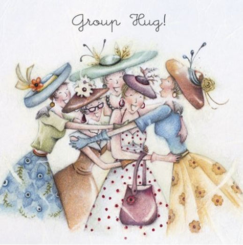 "Group Hug" greeting card from Berni Parker. Blank inside for your own message. Brown envelope included. Size 150 x 150 mm