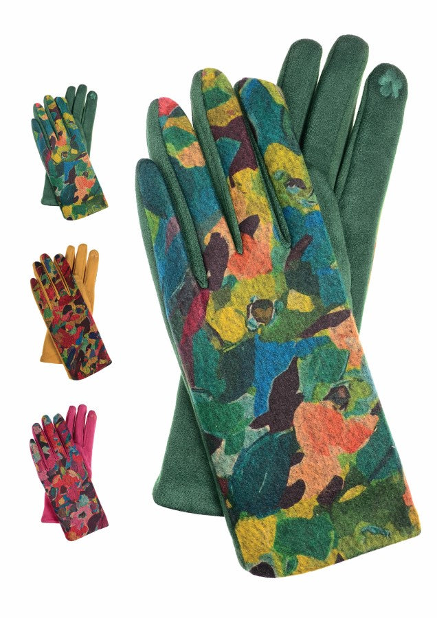 Hot Tomato Flora Fantasia - Free-Size Poly Suede Gloves Emerald/Multicolour
