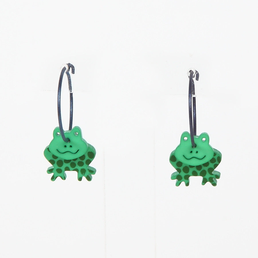 Quirky earrings from Danish company 'Lene Lundberg'. They comprise a titanium hypo-allergenic hoop and a delicate cut-out in a form of acrylic.