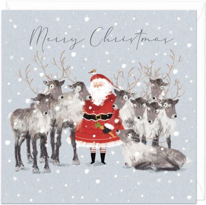 Santa and Friends (XA163) Christmas Card - message inside reads "Wishing you a Merry Christmas and a Happy New Year". Measures 158 x 158 mm - comes with white envelope.